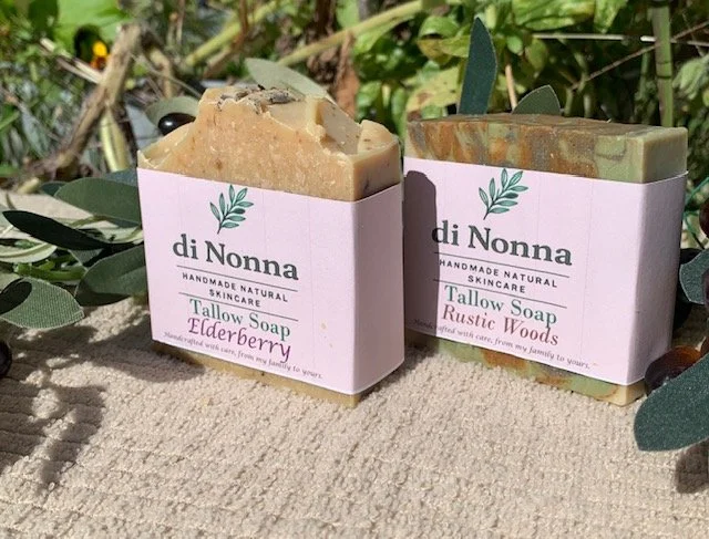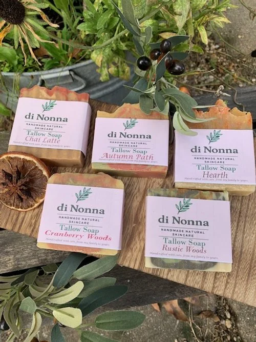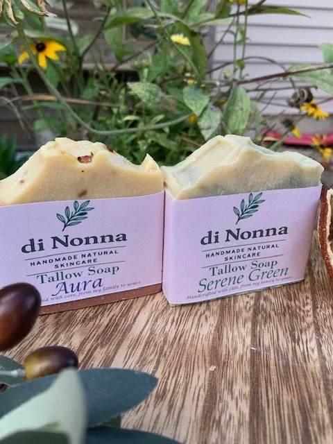 Categories: All Soaps Skin Natural Deodorant Holiday Bundles All | Soaps | Skin | Natural Deodorant | Holiday Bundles | Lemon Poppyseed Tallow Soap $7.00 Add To Cart Added! Holiday Mini-Bundle $10.00 Serene Green Aura Add To Cart Added! Nonna’s Holiday Soap Box $22.00 Add To Cart Added! Holiday Glow Trio $33.00 View Options Winter Nourish Set $42.00 View Options The Woodsman Winter Duo $26.00 Add To Cart Added! Gingerbread $7.00 Add To Cart Added! Fir Needle $7.00 Add To Cart Added! Candy Cane $7.00 Add To Cart Added! Mulled Cider $7.00 Add To Cart Added! Pumpkin Spice $7.00 Add To Cart Added! Cranberry Woods $7.00 Add To Cart Added! Hearth $7.00 Add To Cart Added! Autumn Path $7.00 Add To Cart Added! Harvest $7.00 Add To Cart Added! Chai Latte $7.00 Add To Cart Added! Serene Green $7.00 Add To Cart Added! Aura $7.00 Add To Cart Added! Apple Crisp $7.00 Add To Cart Added! Rustic Woods $7.00 Add To Cart Added! Elderberry $7.00 Add To Cart Added! di Nonna Tallow Night Cream $12.50 Add To Cart Added! Clove and Chamomile $7.00 Add To Cart Added! Tea Tree $7.00 Add To Cart Added! Vesuvius $7.00 Add To Cart Added! Calendula $7.00 Add To Cart Added! Savage $7.00 Add To Cart Added! Unscented $7.00 Add To Cart Added! di Nonna Shaving Bar $5.00 Add To Cart Added! Dolce Nocciola $7.00 Add To Cart Added! Lemongrass & Vanilla $7.00 Add To Cart Added! Lavender $7.00 Add To Cart Added! Eucalyptus & Peppermint $7.00 Add To Cart Added! Lemon Biscotti $7.00 Add To Cart Added! Clementine Mango $7.00 Add To Cart Added! Tallow Moisturizer from $10.00 View Options Tallow Body Butter from $12.00 View Options Tallow Sunscreen from $10.00 Select Size 2 oz 3 oz 4 oz. Add To Cart Added! Natural Deodorant $12.00 Lavender Cedarwood Serene Green Aura Add To Cart Added!
